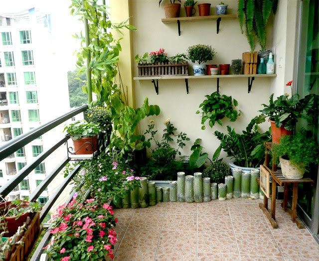 - Mẫu 4: Ban công “xanh nhưng gọn” nhờ hệ thống cây leo tường thẳng đứng (Green wall). Phương án này thay thế các chậu cây lộn xộn dưới sàn nhà.